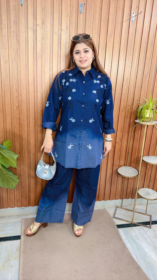 Carly Ombre Embroidery Denim Coord set