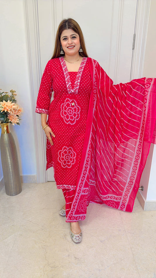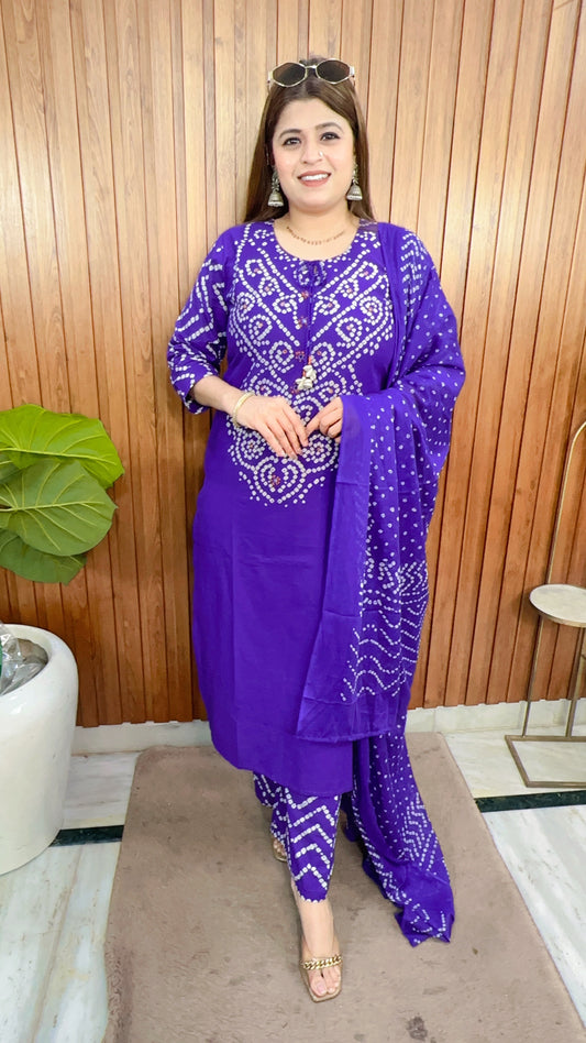 Vrinda Bandhej Cotton Suit Set