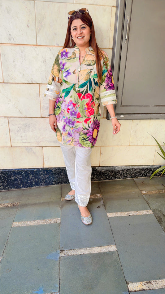 Floral V Neck Short kurti