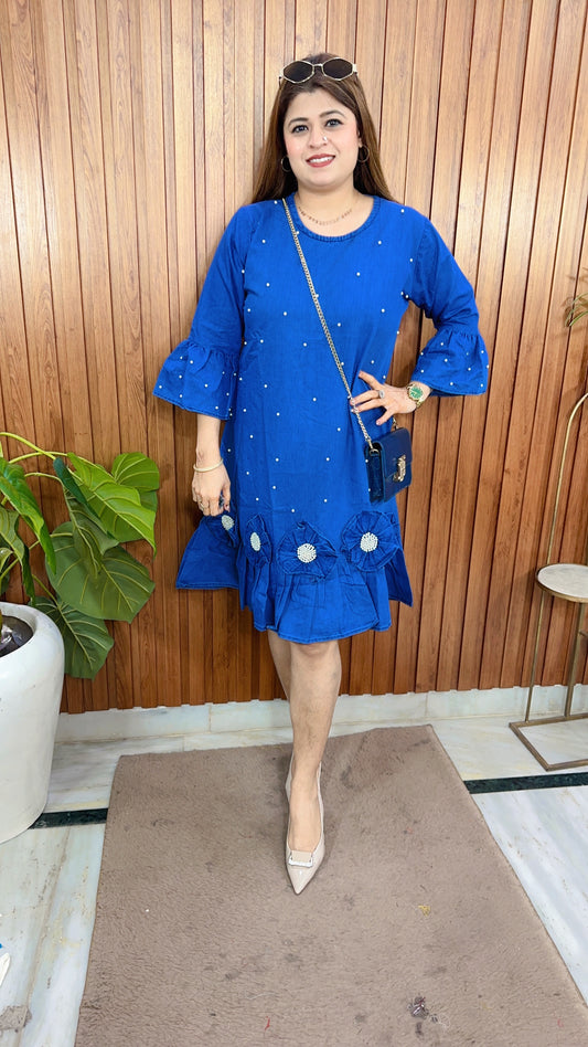 Pearl Flower Denim Dress
