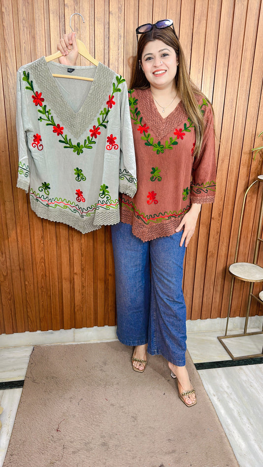 Embroidery V Neck Top