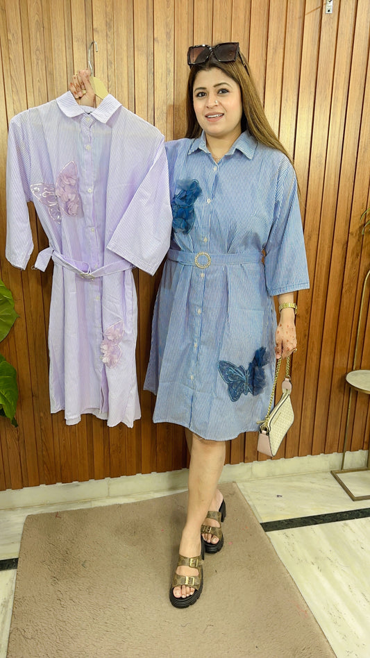 Stripes shirt Dress with emblished butterfly