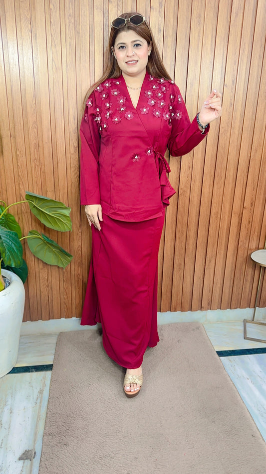 Elite Crimson Imported Two Piece Coord set