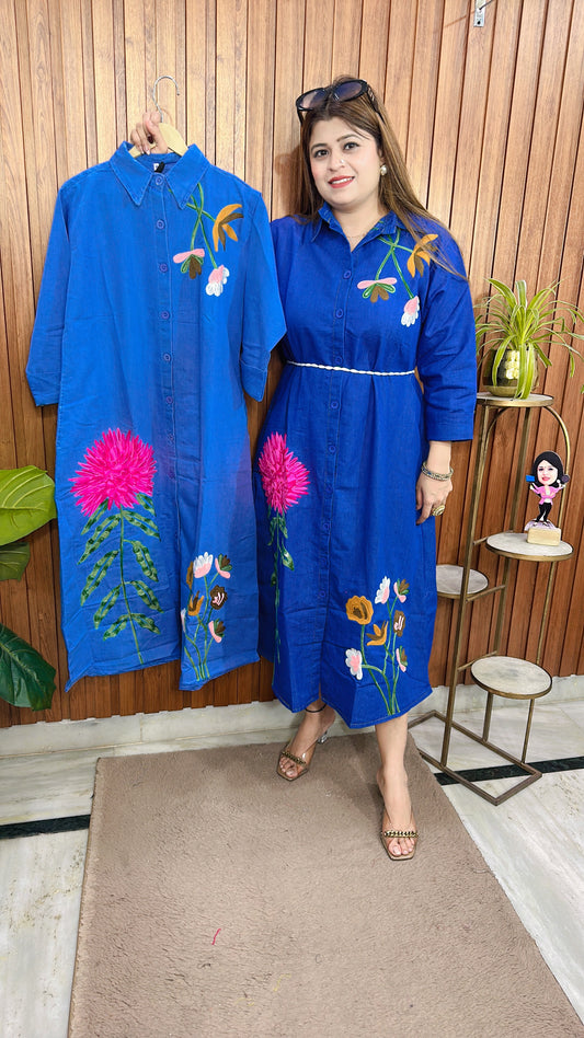 Flower Embroidery Denim Dress