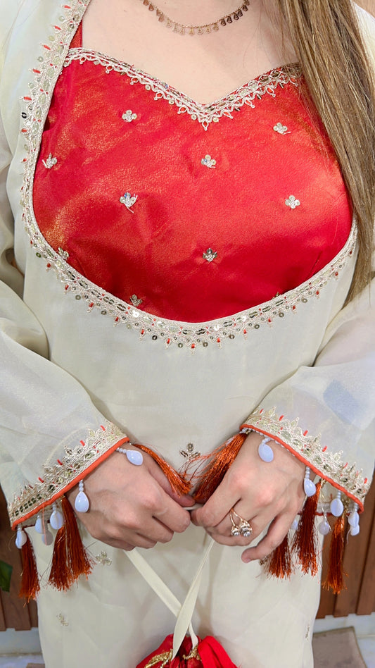 Glass Tissue Embroidery Three Piece Coord set
