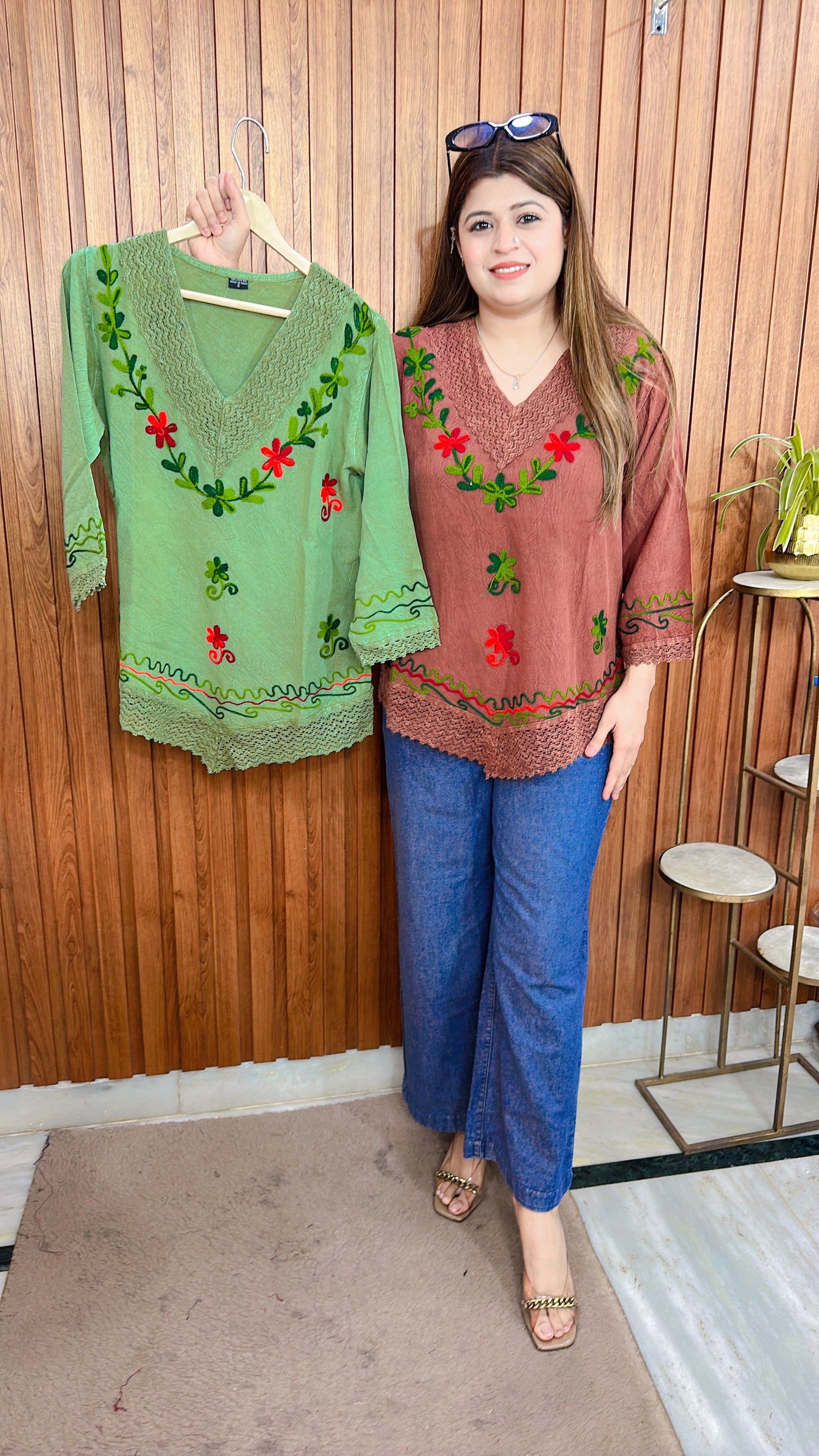 Embroidery V Neck Top