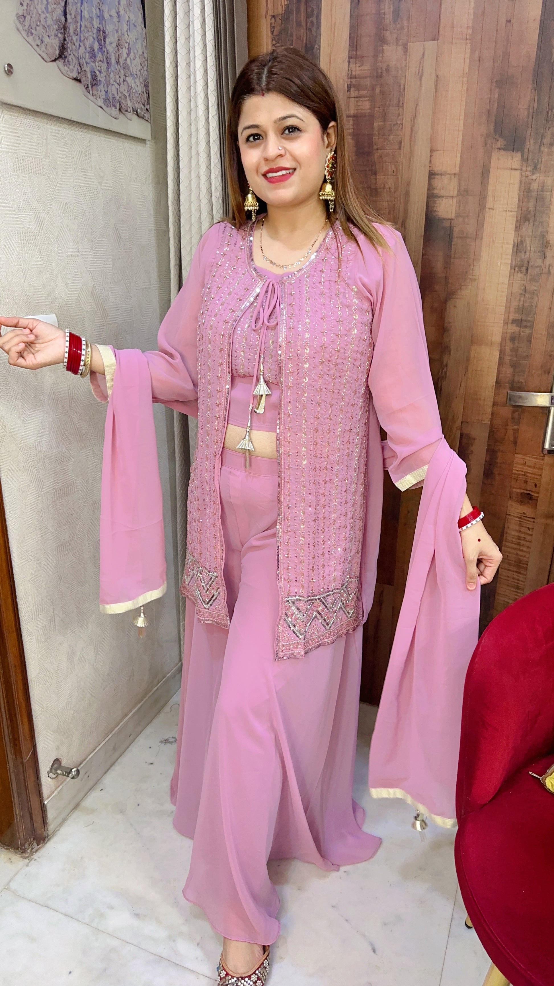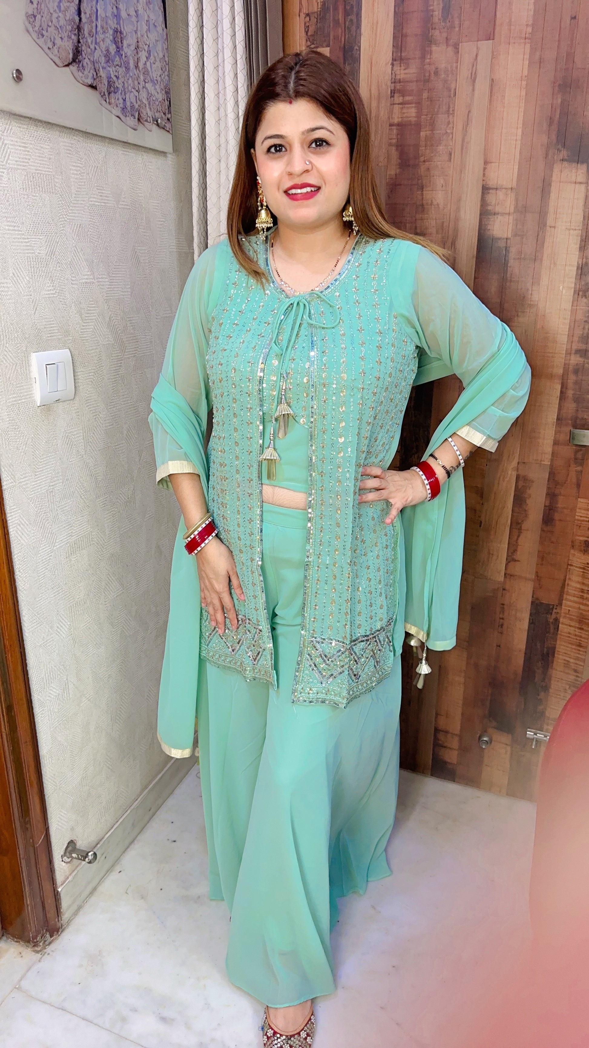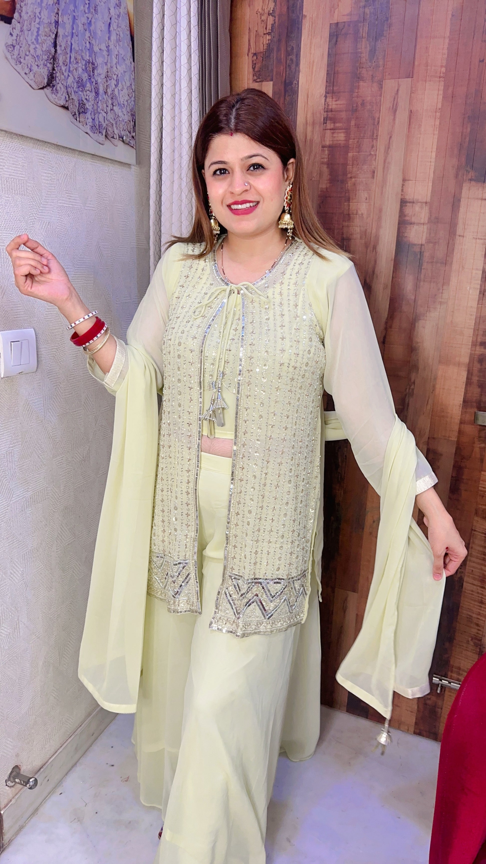Shrug With Plazo Crop Top Set