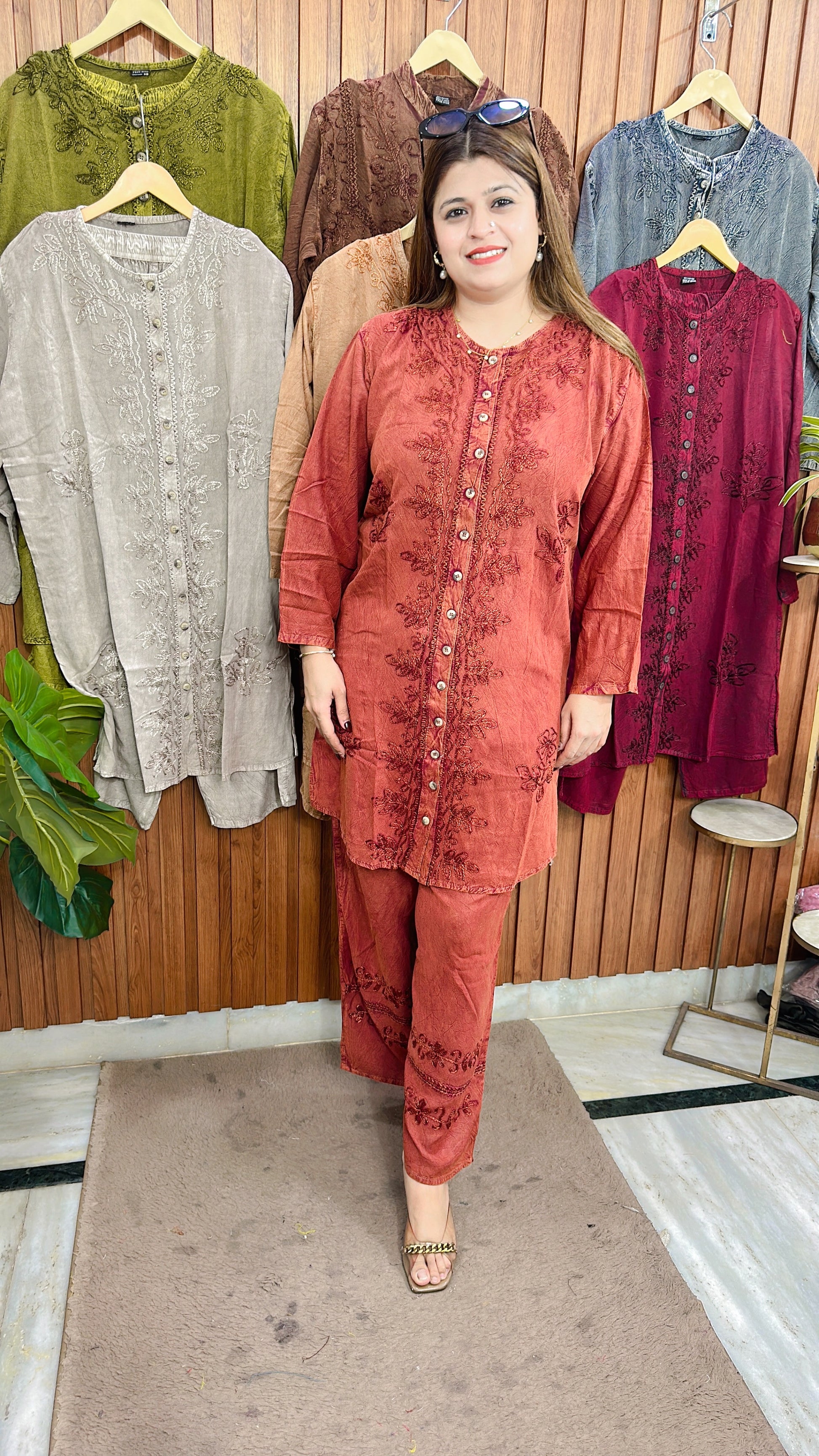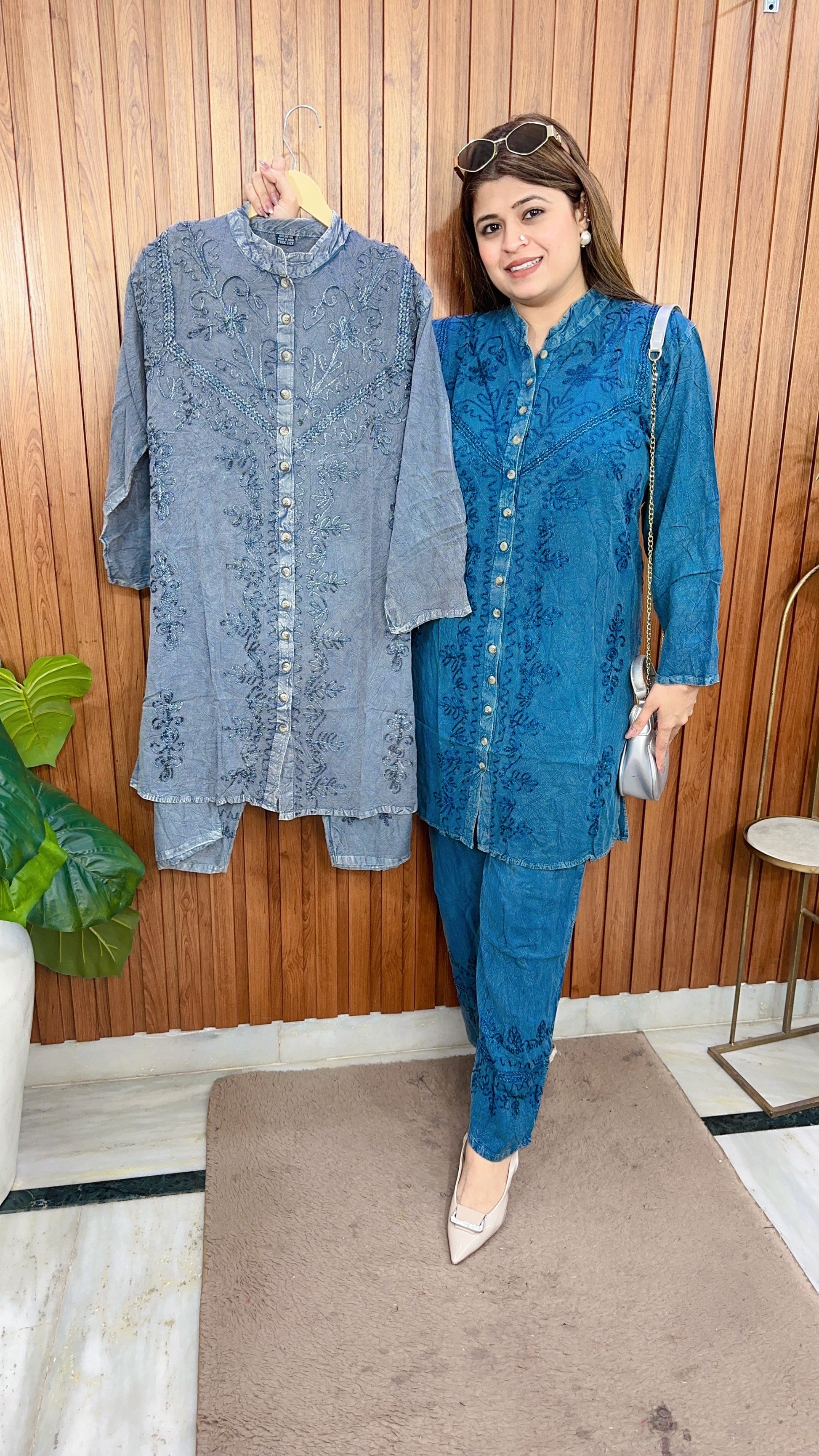 Premium cotton marble Lakhnavi coord set