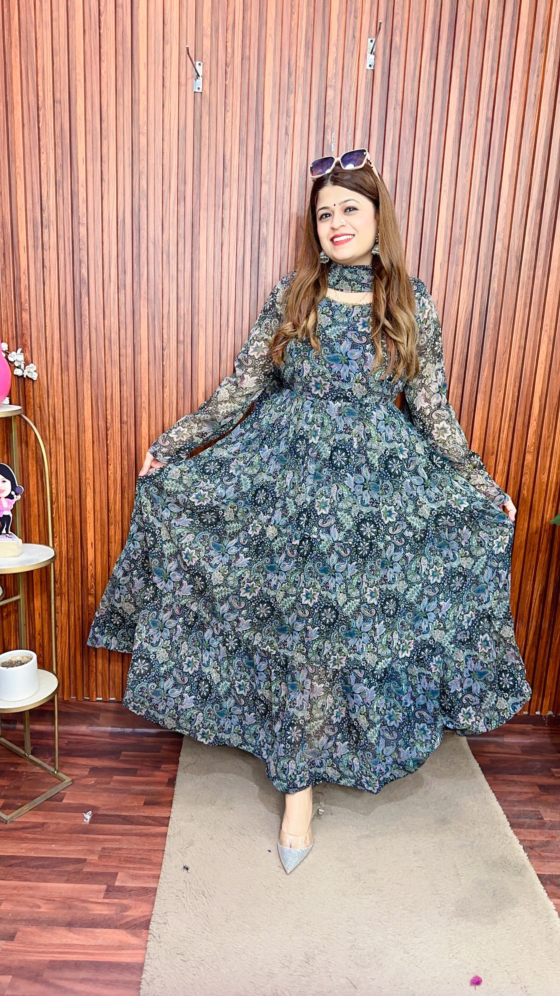 Printed georgette Anarkali with dupatta