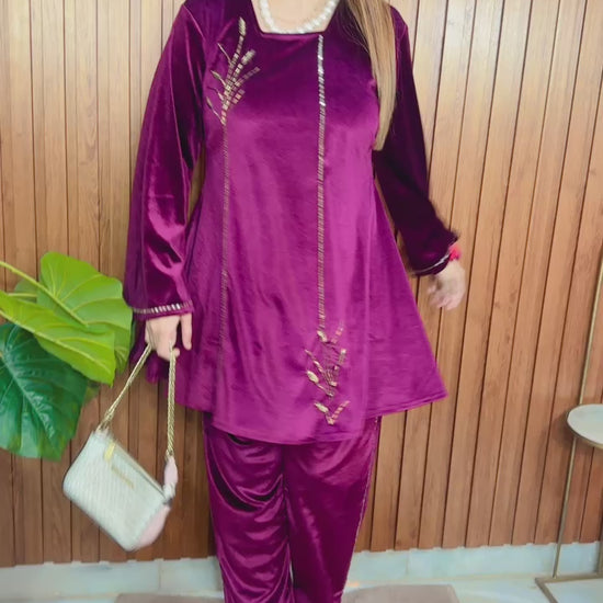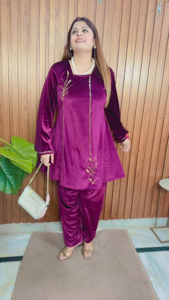 Velvet emblished coord set