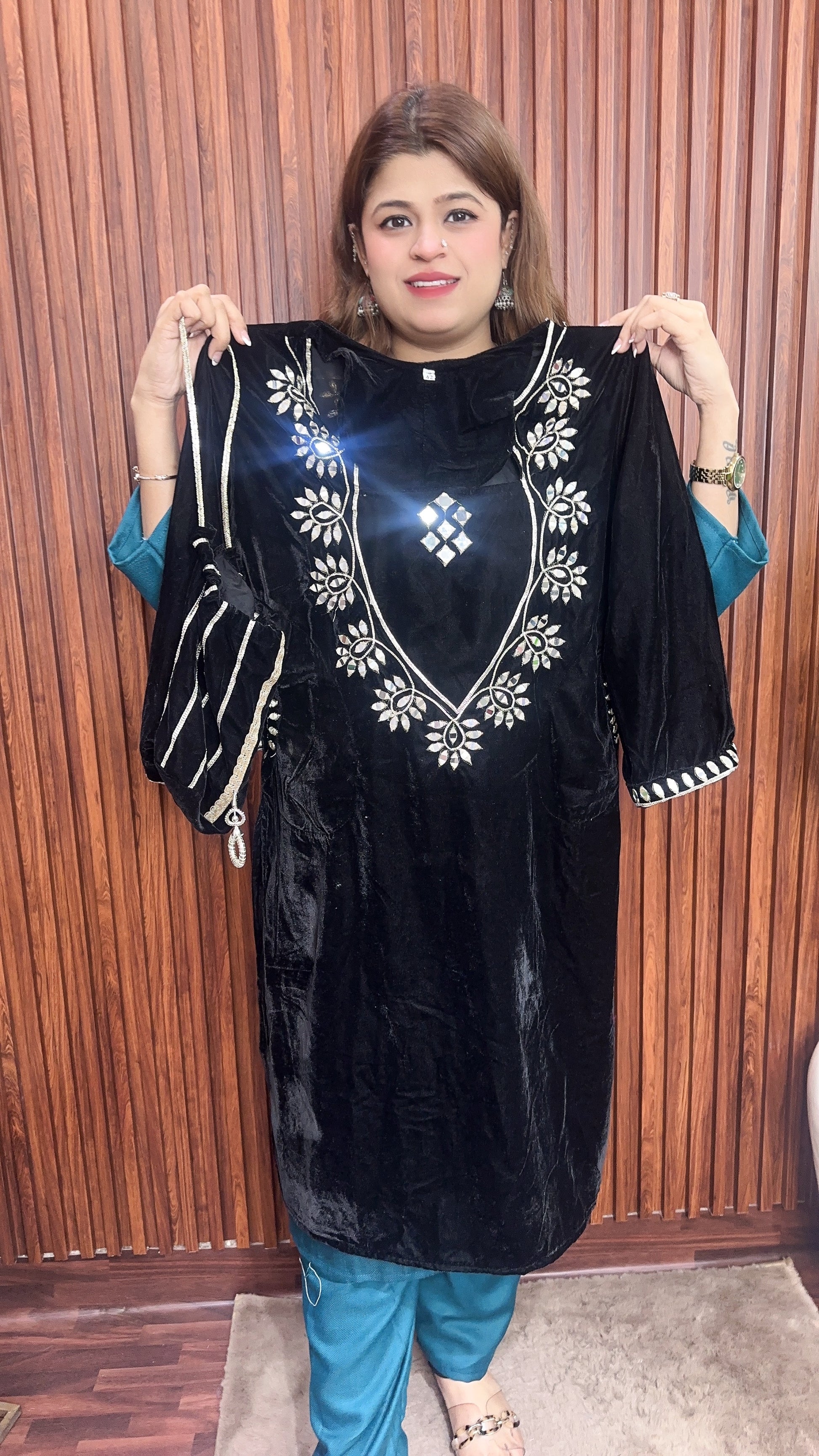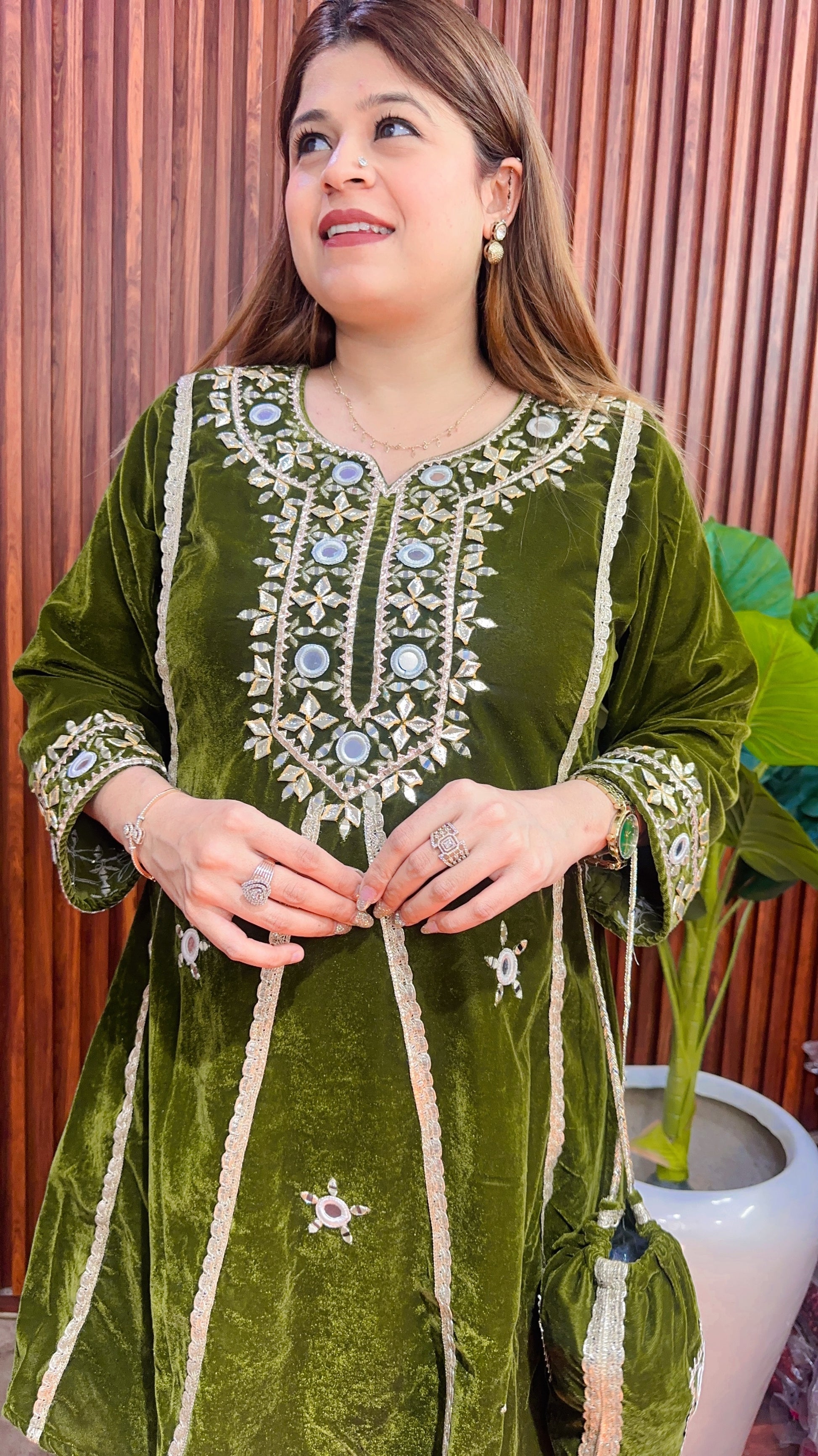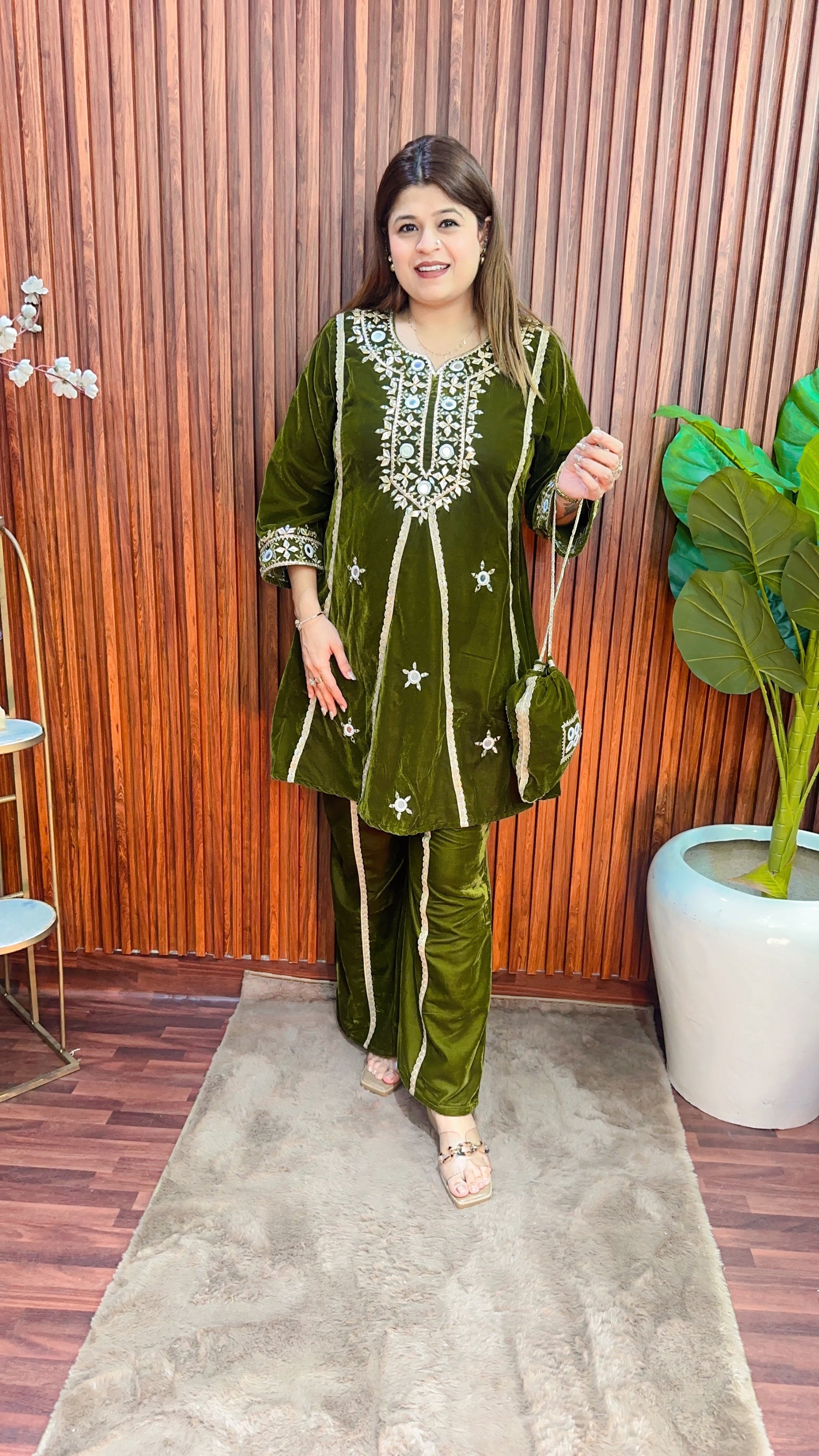 Velvet Peplum coord set with potli